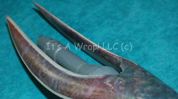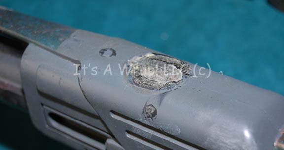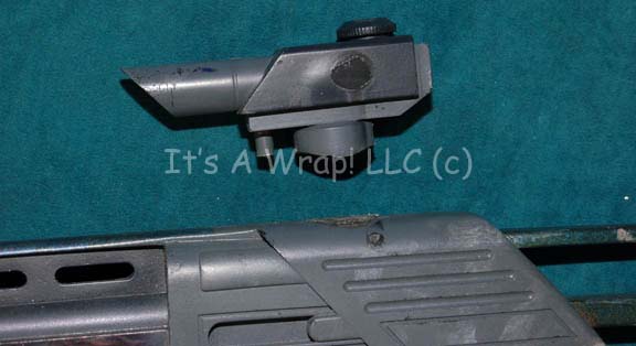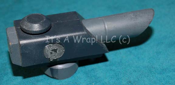 Description: A prop weapon made for use in the tenth Star Trek feature film,” Nemesis”. This prop item rubber cast in gray, spray-painted an iridescent green-blue, features a bayonet style tip at the end of the barrel and an unattached faux light scope. The rifle is completed with an adjustable vinyl strap in the same iridescent shade. The item measures approx. 35 X 8 X 4 inches.