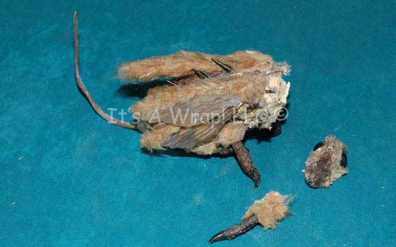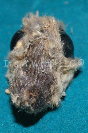 Description: A prop item featured in the Star Trek: Voyager episode “Timeless”; wherein “Voyager” crashes on an icy planet on the outskirts of the Alpha Quadrant killing everyone except “Ensign Kim” (Garrett Wang) and “Commander Chakotay” (Robert Beltran) who return to the planet fifteen years later with a plan to try and change history to prevent the crash from ever happening. This item is the Talaxian fur fly that hung in the engine room of “Neelix’s” (Ethan Phillips) ship for six years and is supposed to bring luck, he gave it to “B’Elanna Torres” (Roxann Dawson) when they were preparing to test the new quantum slipstream drive; it has a resin body, with black legs, wings and fur glued on. The fur has worn off in a few places; the head and one of the legs have broken off but are included and can be reattached. The item measures approx. 8 X 3 inches minus the head.