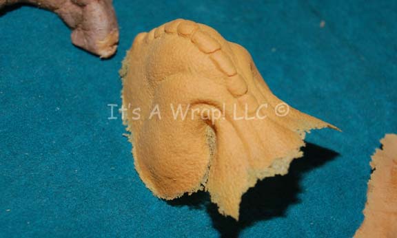 Description: A lot of latex appliances used to create the unique appearance of the Cardassian on Star Trek 24th century episodic television. Included are a latex Cardassian nose, shoulders, and ears and forehead. The forehead has the blue coloration in the trademark ‘tear drop’ shape denoting it to be for a female Cardassian. Items were found in a ‘Ziploc’ bag with the label ‘Cardassian Adult: Forehead, Shoulders, Nose, Ears’.