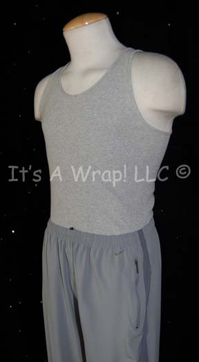 Description: A costume featured in the Star Trek: Enterprise episode “The Forge”, wherein Earth's embassy on Vulcan is bombed, it is traced back to a religious faction known as the “Syrrannites”. This costume is for wear by Dominic Keating in the role of the armory officer of the “Enterprise NX-01”, “Lieutenant Malcolm Reed”, during a basketball betwixt members of the crew, and is a gray tank top, gray Nike exercise pants with a gray stripe down the leg, two functional pockets, zip ankle-cuff adjustment, a tie on the inside, around the waist, and were found separately but all in the “Malcolm Reed” collection.