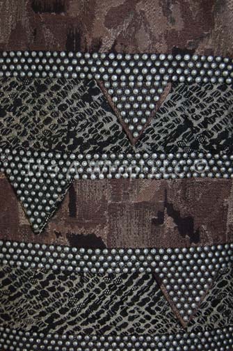 Description: A costume element featured in the second part of the Star Trek: Deep Space Nine two part episode “The Maquis”; “Commander Sisko” (Avery Brooks) tries to rescue “Gul Dukat” (Marc Alaimo) and avoid a war between the Maquis and the Cardassians. This item is the jacket of “Drofo Awa” (Michael Bell), captain of a Xepolite freighter caught by “Commander Sisko” and “Gul Dukat” (Marc Alaimo) smuggling weapons in the Demilitarized Zone, it is camouflage gray with black patterned stripes and plastic dotted accents. A sewn in Deep Space Nine tag reads ‘Michael Bell’ and the costumer’s tag reads ‘441 The Maquis pt II, Xepolite captain, Michael Bell’.