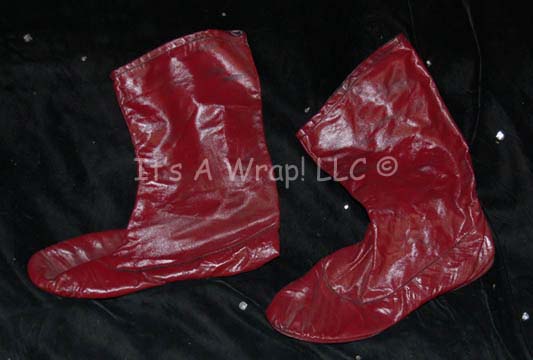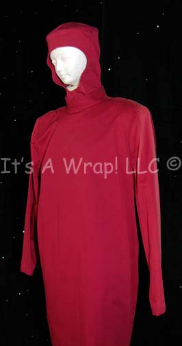 Description: A costume featured in the Star Trek: The Next Generation episode “Samaritan Snare”, wherein “Captain Picard” (Patrick Stewart) needs to have his cardiac implant replaced at Starbase 15 and the “Enterprise-D” deals with a group of Pakled who want to steal Federation technology. This costume is the standard 24th century surgical gown; a long-sleeved, knee-length, red gown, a zip down the back, matching trousers, a hood that tucks into the top of the gown, and ankle-length red, leather shoes. The gown has light fading on the left sleeve due to time and storage; a sewn in Deep Space Nine tag denotes reuse by ‘Griff James’ and a costumer's tag that reads ‘143 Samaritan Snare’ Anesthesiologist, Charles Geschind’.