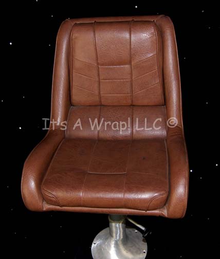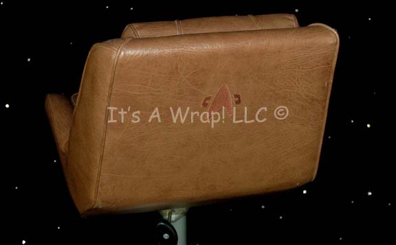 Description: A brown leather chair believed to have been used on the bridge of the “Enterprise-E” during Star Trek VII: First Contact or Star Trek X: Nemesis. The item features an embroidered brown Starfleet logo on the reverse seat back and has an affixed metal brace on the bottom for attachment to a pedestal. The item measures approx. 21.5 X 24 X 22 inches and comes with a pedistal and base that required floor mounting.