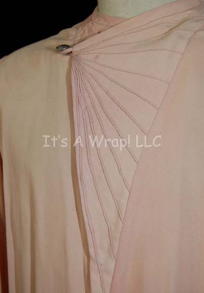 Description: A costume top featured in Star Trek IV: The Voyager Home for wear by William Shatner in his portrayal of “Admiral Kirk”. The shirt is salmon-colored with an asymmetrical front that snaps diagonally up the right side and loops around a silver-colored button at the top. The cuffs feature Velcro seals and the shirt appears to be faded and stained from use. The item is presumably one that was used during underwater, rain, or swimming scenes in production. This style was also seen throughout Star Trek III: The Search for Spock. The sewn in Western Costume Co. tag reads ‘William Shatner' and an odd costumer’s tag reads ‘Cmmdr Kirk’s Shirt, William Shatner, Star Trek IV’.