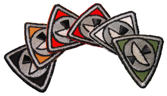 Description: A complete lot of assignment patches featured on personnel attached to station Epsilon IX in Star Trek I: The Motion Picture. The items are all triangular with rounded sides depicting a satellite circled by gray stitching with differing colored backings to indicate the division of the wearer within Starfleet. The lot contains these colors and their associative divisions: red, Engineering; green, Medical; white, Command; yellow, Operations; orange, Sciences; and black for which no canonical reference has been laid out. The six item lot is comprised of patches measuring approx. 2.25 X 2.25 X 2.25 inches.