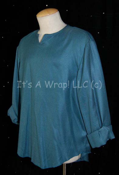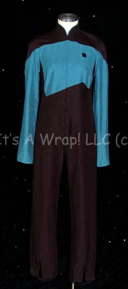 Description: A costume that is believed to have been developed for the Star Trek: Deep Space Nine episode “Sons of Mogh”: wherein “Kurn” (Tony Todd), brother of “Worf” (Michael Dorn) arrives on the station seeking “Worf” to perform the Klingon suicide rite on him so he can regain his honor. This item is light-blue hospital-type gown with the sleeves sewn to be partially rolled up and a zip down the back. A sewn in Deep Space Nine tag reads ‘Tony Todd”.