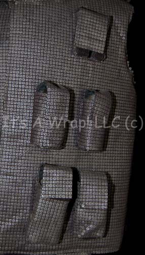 Description: A costume featured in the premiere episode of Star Trek: The Next Generation, “Encounter at Farpoint”; wherein the crew of the “Enterprise-D” is challenged by “Q” (John DeLancie) to solve the mystery of Farpoint Station. This costume is that of the soldier who is shot and killed in front of “Captain Picard” (Patrick Stewart) and the crew, it consists of a heavy, reinforced, black vest featuring a silver-colored “chainmail” pattern, and several pockets on left side with Velcro closures that are made to look as if they are being used. Also included are arm, leg, and lower torso armor of the same design, matching gloves and a padded helmet that covers all but the front of the face. All items have minor wear due to time and storage and an original costumer’s tag that reads ‘Chuck Hicks, Officer’.