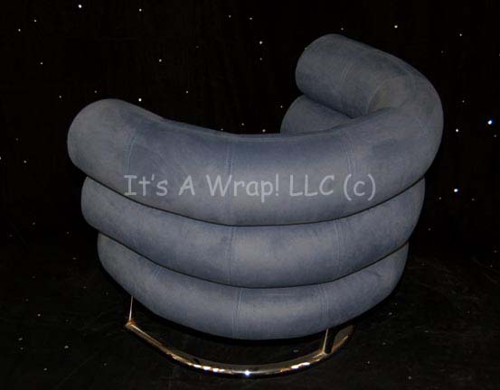 Description: A set dressing chair appearing in the Star Trek: Enterprise episode “Cogenitor” on the set of the Vissian starship. The item is set upon a metal framework with large tube-like cushions making up the seat back and was located within a plastic wrapping that was inscribed ‘TNG Picard Qtrs.’ The item measures approx. 38 X 28 X 28 inches.