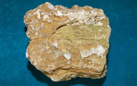 Description: A mineral formation acquired for use in Star Trek episodic television. The item is a cluster of milky white colored minerals with sparkling gold colored metallic growths appearing generally. The item measures approx. 6 X 6.5 X 4.25 inches.