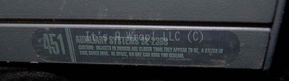 Description: A prop Starfleet carry case like those appearing in various episodes of Star Trek: Voyager like “The Omega Directive”. The item is an injection molded plastic carry case with a molded handle, a hinged lid, flip-latches and adorned on both sides with a Starfleet inventory application. The application on the reverse reads ‘Auxiliary Systems’ while the larger one on the face reads ‘Starfleet Material Supply Command 03’ and depicts a Starfleet emblem, these applications are colored metallic silver. There is some bubbling in the larger one. The interior is adorned with foam inserts and the item measures approx. 19 X 11 X 4.25 inches.