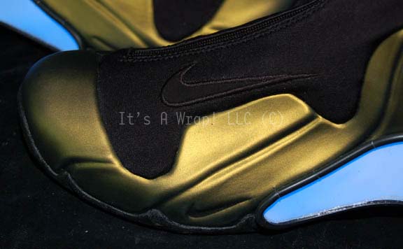 Description: A pair of shoes featured in the Star Trek: Voyager episode “Tsunkatse”; wherein “Seven of Nine” (Jeri Ryan) and “Tuvok” (Tim Russ) are kidnapped by a devious fight promoter who forces “Seven” to fight in spectator sport called “Tsunkatse”. A pair of metallic-green, Nike athletic shoes featuring a zip up the front that conceals the laces, a small white plastic panel on the side that lights up blue when activated via a small switch and wiring that is tucked into the heel of the shoe along with the nine-volt battery that powers it. The shoes are size 7.5, one has ‘Jeri, Blue’ inscribed in it and they come in their original box that has ‘Jeri Ryan, Blue’ written on the side.