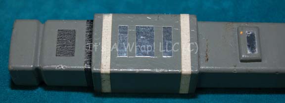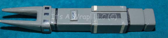 Description: A prop item appearing in various Star Trek episodes, specifically in the episode “Pen Pals” of Star Trek: The Next Generation. The item is a solid cast resin hand prop with raised elements, adhesive metallic silver accents, and a Velcro placement. The item was repainted for use in a later production. Measures approx. 6 X 1 X 0.75 inches.