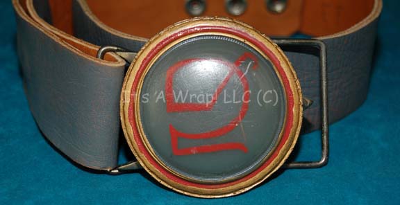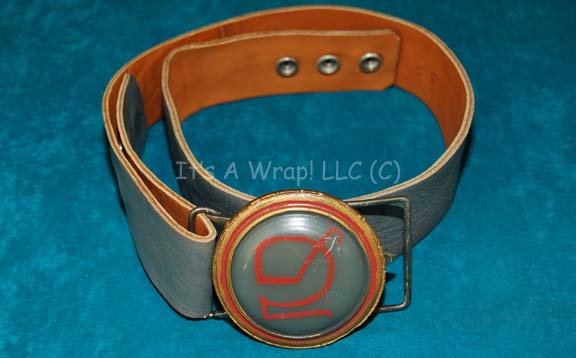 Description: A costume featured in the opening sequences of the fourth Star Trek feature film, “The Voyage Home”. This costume is that of one of the Vulcan technicians who were repairing “Kirk” (William Shatner) and crew’s “commandeered” Bird of Prey before their attempted return to Earth; a long sleeved shirt with a deep open chest that clasps in spite of a number of buttons, a pair of leather bracelets with round resin ‘gems' on them that feature painted Vulcan iconographic symbols, and a leather belt with a similar ‘gem’ that was glued to a silver colored metal Starfleet emblem buckle. A plum colored, felt hat in the Vulcan-style featuring a black and rust-colored sash around the base that becomes a chin strap. Unfortunately, the costume does not include the trousers. A sewn in Paramount tag in the hat reads ‘3-26’.