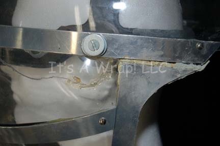 Description: A clear plastic face and head shield featured in Star Trek V: The Final Frontier for wear by Starfleet engineers. The item appears during the scene in which the “USS Enterprise-A” command crew return to the ship by way of shuttlecraft. Two engineering repair crewmen are wearing the items and stand at attention in their white radiological suits. The items are clear plastic with size adjusting head gear inside, and silver colored metal framework on the outside. The item measures approx. 17 X 14 X 10inches.