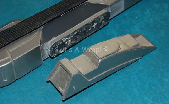 Description: A prop phaser rifle like those appearing in Star Trek VIII: First Contact. The item is a Starfleet Type III Mark II Phaser rifle made from solid cast resin, painted metallic gunmetal with black painted accents and a statically mounted black nylon shoulder strap. The item depicts evidence of repair in that the stock and butt sections are off kilter and appear to have been refitted to one another. The ‘scope’ mount is disconnected and lacks any acrylic elements common to intact versions of the item, but is accompanying. The item measures approx. 33.5 X 9.5 X 2 inches when positioned according to its appropriate configuration.