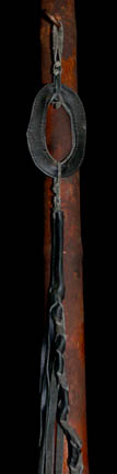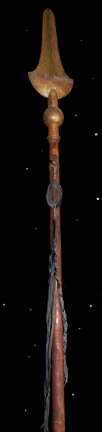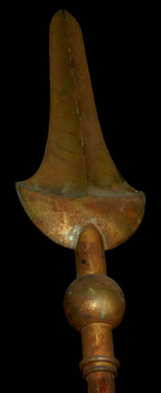 Description: A prop item acquired for use in Star Trek episodic television. This item is halberd, a two-handed pole weapon, consists of a long, sturdy plastic shaft and metal ‘spear head’ at the end. The head of the item is slightly loose upon the shaft but still securely held in place. This large item measures approx. 113 inches in length and approx. 7 inches at its widest point.