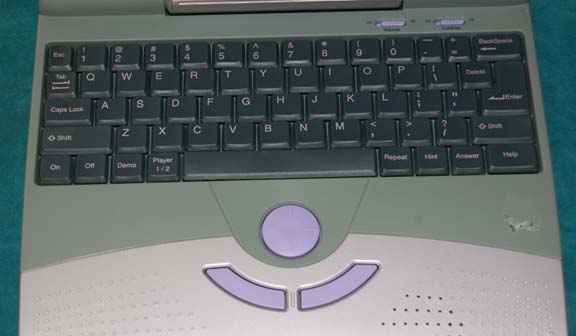 Description: A unique prop featured in the Star Trek: Enterprise episode “Broken Bow” for use by student characters at the Brazilian language institute during a scene involving a class taught by “Hoshi Sato” (Linda Park). The item is an injection molded plastic laptop computer altered for screen use. The item, in reality, is a teaching tool with remaining electronic capabilities. Four AA sized 1.5volt batteries will power the item, press the ‘DEMO’ key and hear the item for its original intended use. As a Star Trek prop, the item has been altered to include a graphical application on the ‘display screen’ that includes graphics of a ‘script entry’, ‘Exo Language Skills’, ‘Translator’, and ‘Notes’, all with odd alien pronunciation spelled out in block letter English. The ‘screen’ has a ‘Windows Operating System’ style appearance with 22nd century Starfleet modifications and one of the windows depicts a class schedule including a lecture time for ‘Prof Hoshi 0900’. The item is also adorned with a rubber faux button, the screen pivots on hinges and locks into place, the keyboard, and other buttons actually depress, and the bottom features rubber no-slide feet. The item measures approx. 10.5 X 9.75 X 1.25 inches.