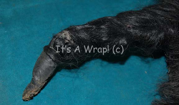 Description: A costume element like those featured in various episodes of Star Trek: Deep Space Nine. This item is a wig worn by one of the actors playing Jem’Hadar warriors; it is black, synthetic hair that fits over the back of the head and is formed into a ponytail. The hair piece has a plastic netting underneath to help it stay on more easily.