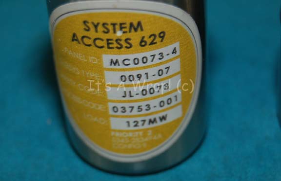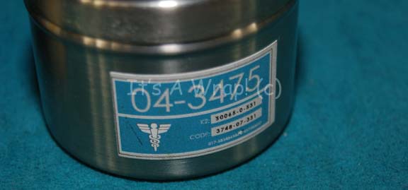 Description: A pair of metal containers used as set dressing in the sickbay of the “Enterprise NX-01” in various episodes of Star Trek: Enterprise. The items are both lidded, one with a flip top plastic lid that is clear; the other features a matching metal lid that fits snugly on the top. Both are adorned with graphical applications depicting Starfleet inventory information. The smaller, wider container has an approx. height of 2 inches and approx. diameter 3.5 inches; the second container has an approx. height of 3 inches and a diameter of 1.5 inches.