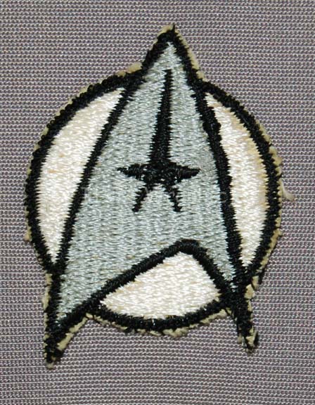 Description: A Starfleet Class-D uniform jumpsuit believed to have been worn by William Shatner in his portrayal of “Captain Kirk” in the climactic scenes of Star Trek I: The Motion Picture and the following dénouement. The costume is a grey jumpsuit with affixed shoes, a zip up the spine, an affixed plastic bio-monitor, a white backed affixed “USS Enterprise” assignment patch on the left breast that indicates the wearer to be part of the command division, and a pair of white division-rank strips affixed to the shoulders with gold thread stitching indicating the wearer to be a ‘captain.’ The costume does not feature any sewn in tags, though sizing and rank indicate an intention for use by Shatner.