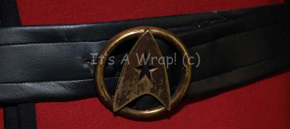 Description: A Starfleet uniform worn by James Doohan in his portrayal of “Montgomery Scott” in Star Trek feature films like Star Trek VI: The Undiscovered Country. The costume was altered for use by actors following its appearance but the lot contains accents to create the best available “Scotty” uniform. The lot consists of a set of black officer’s trousers, a sleeveless operations gold uniform undershirt, a maroon colored Starfleet officer’s uniform jacket, a black leather belt with an affixed gold colored metal Starfleet emblem buckle. The jacket features an operations grey division strip affixed to the arm, but the lot contains a an unattached operations gold division strip for the sleeve that was located with all but one of the appropriate commendations and service pins attached as the costume appeared in Star Trek VI, as well as a matching shoulder strip with an affixed metallic silver painted molded resin security disk. The sleeve strip features two gold colored metal ‘commendation bars’ and four affixed ’10 year service’ pins, the leftmost one having been added following the item’s location. The uniform shirt features a sewn in Paramount tag reading ‘James Doohan’, the trousers and the uniform jacket both feature sewn in Western Costume Co. tags reading ‘James Doohan’, the belt and the additional division strips were located separately from the costume garments. The trousers also feature a Star Trek VIII tag reading ‘Jackson Sleet’ and depict a small hole in the stitching immediately between the legs. Some fading is visible on the shoulders of the uniform jacket due likely to light exposure, nevertheless, the lot is in fine condition.
