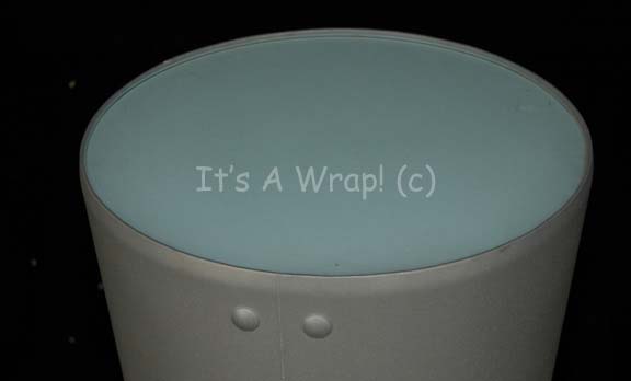 Description: A set dressing table appearing in the Star Trek: Enterprise episode “Horizon” as part of the crew quarters of “Travis Mayweather” (Anthony Montgomery) on the “E.C.S. Horizon”. The item is a machined metal drum with an glass table surface made as an end table. The item measures approx. 24.5 X 12 inches diameter, and in the episode it was kept near the sink as a platform for folded towels.