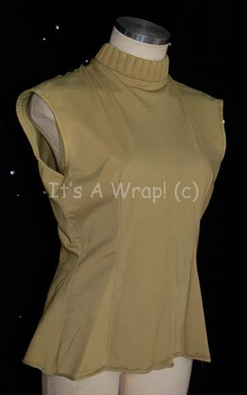 Description: A costume element like those featured in various Star Trek feature films beginning with “The Wrath of Kahn”. This item is for wear by Deforest Kelley as the beloved “Dr. McCoy”, it is a sleeveless, Starfleet uniform undershirt in Medical Green with ribbed collar cuffs, clasps at the neck, and a zip down the back. A sewn in Paramount tag reads ‘Deforest Kelley’.