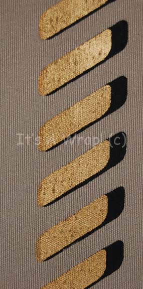Description: A fabric flag used as set dressing in various episodes of Star Trek: Enterprise like “Demons” during which it appeared as part of the conference room set during the top of the show. The item is grey fabric with a set of vinyl graphics applied depicting gold braid on the top and bottom and a depiction of Earth with a half wreath flanking it on the left side. The right end of the flag features ties for pole attachment. The item measures approx. 57 X 35 inches and the adornment which exists on one side of the fabric only is in good condition with the beginning of cracks in the medium.