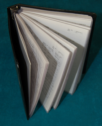 Description: A prop launch manual from the missile silo complex set in Star Trek VIII: First Contact, the site from which the “Phoenix” was launched. The item is a black binder with a graphical application adhered to the spine depicting a bar code, the emblem of the ‘United States Air Force’, and listings for ‘RTD. ACCESS PORT’ and ‘Vol 004-F’. The item opens to reveal over one hundred pages of procedures and graphs for the launch of Earth’s first warp capable ship, all pages are slid into sturdy plastic page holders in this three ring binder. The first page indicates ‘Montana Space Center’ with a missile graphic, and ‘This Document Contains Hazardous Operations’. Item measures approx. 11.5 X 10.25 X 1.75 inches.