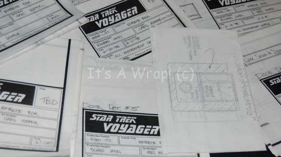 Description: A lot of schematics for sets featured in various episodes of Star Trek: Voyager beginning in the episode “Extreme Risk”. This lot consists of five schematics of what appear to be interiors and consoles for what became the “Delta Flyer” shuttle craft. All items feature Production Number, Episode title, Production and Set Designer, Date of original creation and/or revision dates, set name, and scale.