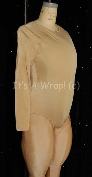Description: A set of costume under padding featured in the Star Trek: Voyager episode “Distant Origin”; wherein “Voyager” encounters a group of evolved reptiles called the “Voth” who find evidence that they originated on Earth but cannot convince their government. This lot consists of a flesh-colored, long-sleeved shirt with padding on the front and back, a foam ‘spine’ down the front, and matching leggings with padding of their own for wear with the “Forra Gegen” (Henry Woronicz) costume in the episode. A sewn in Voyager tag in both items reads ‘Henry Woronicz’.