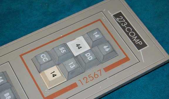 Description: A computer console button board like those appearing in episodes of Star Trek: Enterprise like “Horizon” or “Terra Prime”. Items like this with larger styled rubber faux buttons appeared in episodes that dealt with technology that existed prior to the state of the art “Enterprise NX-01”. One rubber faux button is missing from the bank placement. The item is gray sheet plastic with a graphical application adhered to the face of the item and used adhesive foam placements on the reverse from set production use. The item measures approx. 9 X 4 X 0.5 inches.