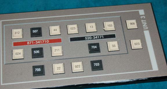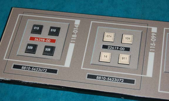 Description: A console button board like those appearing variously in episodes of Star Trek: Enterprise on the set of the “Enterprise NX-01”. The item is a sheet of smoked acrylic with beveled edges and a graphical application adhered to the face. The item also features rubber faux buttons and remaining double stick foam placements on the reverse from set production use. The item measures approx. 4.5 X 16 inches.
