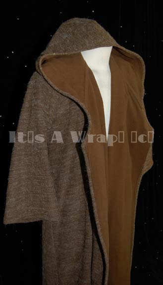 Description: A costume featured in the Star Trek: Voyager episode “Unity”; wherein "Commander Chakotay" (Robert Beltran) is rescued and cared for by a band of former Borg humanoids and try to impose their will on him through the telepathic link that helped him heal so quickly. This item is a long-sleeved, full-length, brown robe with an attached hood and appears to be made of natural or synthetic mohair. A costumer’s tag names the episode and number and another denotes it for wear by Patrick Barnitt.