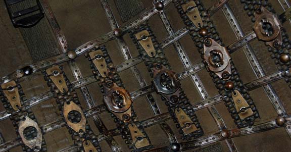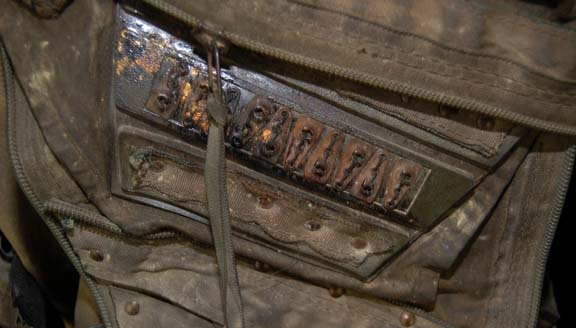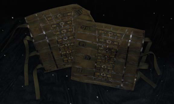 Description: A costume featured in the last Star Trek feature film, “Nemesis” and reused in the Enterprise episode “Demons” as jumpsuits for the ‘Orpheus Mining Colony’ on the moon. This costume consists of a long-sleeved, full-length jumpsuit in a distressed, aged, yellowed brown color featuring diagonal quilting along the shoulders, Velcro and laced wrist cuff adjustment, a zip down the front, reinforced quilting at the knees, zipped and laced ankle cuff adjustment. Also included is a piece of heavy-duty, leather body armor featuring metal and rubber accents on the front, various straps and snaps to secure it, and olive-green canvas shoes that tie at the bottom and zip up the ankles. For its use in Enterprise, this costume had the body armor removed, added a patch under the right shoulder that reads “Orpheus Mining Colony, Est. 2090, Sine Qua Non”, and a sewn in Enterprise that tag reads ‘Scott Booker #96’. This costume appears to be the last of the type hereby found available.