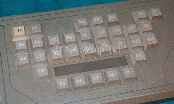 Description: A prop computer keyboard built in the style preceding the launch of “Enterprise NX-01” in various episodes of Star Trek: Enterprise. The item is a fashioned wood backing with a graphical application adhered to the face and multiple rubber faux buttons with letter combinations and numeric values. The item features beveled edges and double sided adhesive strips on the reverse from set production use. The item measures approx. 14.5 X 6 X 1 inch.