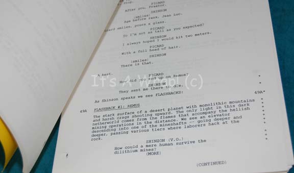 Description: A final draft script to the tenth Star Trek feature film “Nemesis”; wherein a political coup takes place in the Romulan Empire and the crew of the “Enterprise-E” travel into its heart where “Captain Picard” (Patrick Stewart) finds a familiar face planning the destruction of the Federation and Earth itself. The cover of the script is blank save for a stamp that reads “Confidential” and the number ‘447’ on the lower right; a title page inside bears the title of the movie, those involved with the story, its draft, and date.