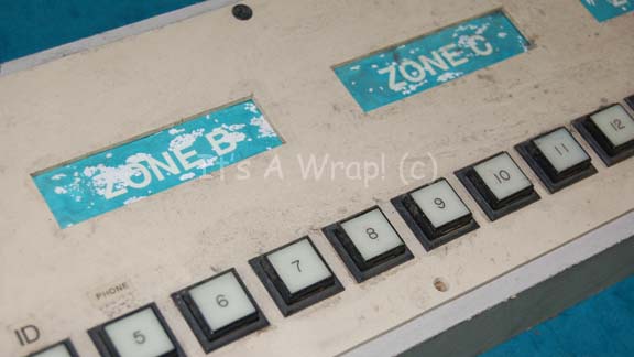 Description: A piece of set dressing believed to have been featured in the eighth Star Trek feature film “First Contact”. This item is believed to be part of the launch control used in the launching of the “Phoenix”, it consists of a wooden frame with an off white button board screwed on to it featuring black, functional buttons with white faces and numerical values counting from 1 to 16; there are small rectangular holes in the surface of the board where in indicators that reads ‘Zone A-D’ are listed above a set of the buttons. On the underside, the buttons are connected to wiring with an unknown purpose. The item measures approx. 7 X 22 X 2.5 inches.