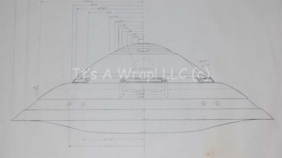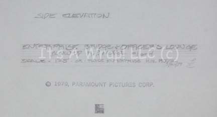 Description: A lot of original pencil renderings of three differing directional views of the “USS Enterprise” deck one exterior as it appeared in Star Trek I: The Motion Picture. The items are three sheets of white paper depicting the front, side, and dorsal elevations of the bridge and officer’s lounge exteriors and a single airlock exterior. The items are copy write and date stamped ‘1979 Paramount Pictures Corp.’ and indicate a missing fourth drawing to complete the lot.