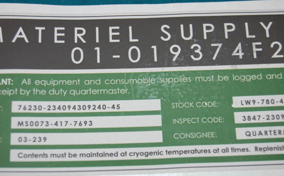 Description: A screen used Starfleet inventory application like those appearing variously in episodes of Star Trek: Enterprise. The item is a ‘Material Supply Command’ application themed in green and black color scheme and depicts realistic warnings and instructions. The item reads ‘Consignee: Quartermaster NX-01’. The application is in excellent condition and depicts only the barest of smudging with a minor loss of adhesive quality; it is affixed to a sheet of white coated paper for ease of removal and was carefully removed from a set piece prior to strike. The item measures approx. 3 X 8.25 inches.