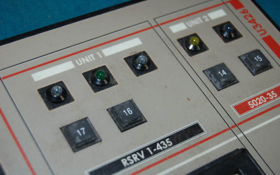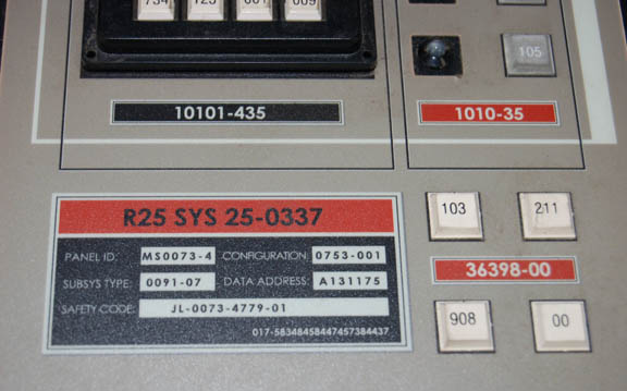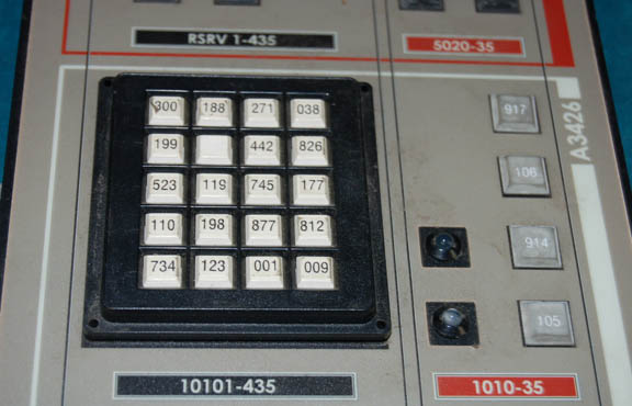 Description: A console button board like those appearing on the bridge of the “Enterprise NX-01” in varying episodes of Star Trek: Enterprise. The item is a piece of sheet plastic with a multi-colored graphical application adhered to the face, a bank of depressible buttons , rubber faux buttons, and a series of embedded lights connected in the reverse by an array of adhesive copper connected to a multi-line cable. The item measures approx. 6.75 X 11 inches.