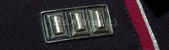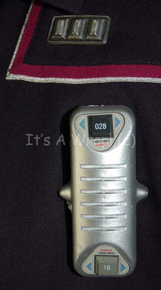 Description: A costume featured in various episodes of Star Trek: Enterprise for wear by Vaughn Armstrong as “Admiral Maxwell Forrest” and later by Steve D’Errico as an admiral in the episodes “Demons” and “Terra Prime” after the ‘death’ of “Admiral Forrest. This costume is an Earth Starfleet Admiral’s uniform consisting of navy-blue trousers, a matching long-sleeved, jacket featuring silver and red piping around the shoulders, further silver and red cuff accents on the left sleeve, and two metal pips below each shoulder denoting the rank of Admiral; a Velcro patch on the left breast for attaching a Universal Translator (included but not attached), a white, long-sleeved, button down dress shirt and matching DKNY tie with an iridescent-blue geometric pattern on it. A sewn in tag in the jacket reads ‘Vaughn, 42’, a sewn in Enterprise tag in the trousers reads ‘Steve D’Errico’ and the name ‘Vaughn Armstrong’ is written on the ‘atlantique’ brand name tag of the shirt; a costumer’s tag reads ‘Enterprise, Admiral Forrest, Vaughn Armstrong’.