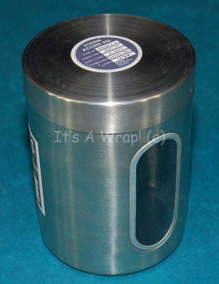 Description: A set dressing item appearing variously in episodes of Star Trek: Enterprise on the set of the “Enterprise NX-01” sickbay. The item is a fashioned metal container with a clear plastic window in one side and a matching metal lid. The lid and the container both feature Starfleet inventory applications, the one on the side reads ‘Medical Supplies’ and recommends protecting the contents from ‘cryogenic temperatures and ionizing radiation’. The item measures approx. 6.75 X 5 inches diameter.