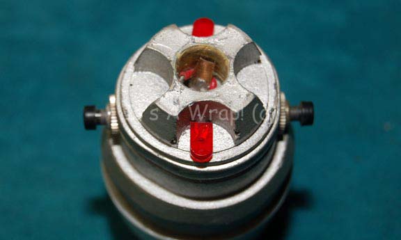 Description: A hand prop sensor created for Star Trek feature films and episodic television. The item is fashioned from injection molded plastic and molded resin painted metallic silver. The item features two black buttons opposite one another on the sides that are believed to activate the red bulbs mounted externally. The item does not retain any power from production use and has not been opened to determine its battery needs. The item measures approx. 2.75 X 2 X 2 inches.