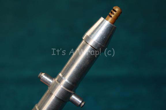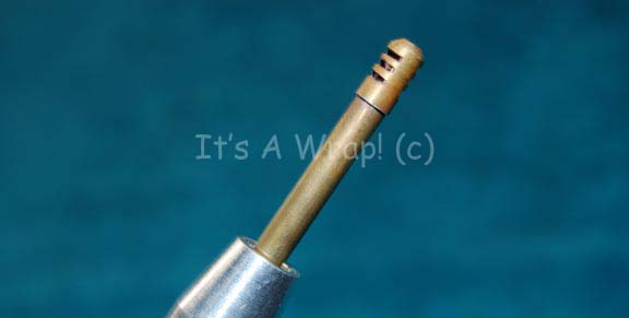 Description: A prop believed to be a medical extractor in episodes of Star Trek: Voyager or Enterprise. The item is a machined metal tube spring loaded and mounted to a corresponding element. The spring allows the outer piece to accept entry of the fore-piece which then extends to be a bronze colored metal rod with a mounted red light bulb. Internally, pair of untested battery terminals are separated from an existing wire set believed to power the light bulb. The item measures approx. 9 X 1.5 X 0.5 inches diameter.