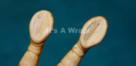 Description: A lot of two unpainted Andorian antennae like those worn by “Talla” (Jasmine Anthony) in the Star Trek: Enterprise episode “These are the Voyages…”. The items are molded foam rubber with internal cavities made to accept framework or mechanisms. The items measure approx. 3 X 1 inch.