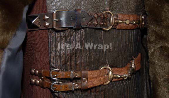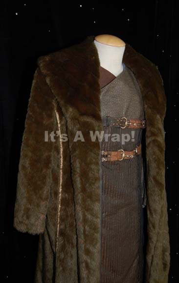 Description: A costume featured in the finale of Star trek: Enterprise and the last piece of Star Trek episodic television filmed, “These are the Voyages…”; wherein “Commander Riker” (Jonathan Frakes) runs a holodeck program of the last voyage of the “Enterprise NX-01” before the charter for what would become the United Federation of Planets is signed. This costume is for wear by veteran trek actor Jeffrey Combs as the former Andorian Commander “Thy’Lek Shran”, it consists of a long-sleeved, full-length, brown jacket made of three different materials; down the right side and right sleeve, a brown corduroy-like material, the left arm, shoulder, and across the chest in a wrap around panel featuring an olive-colored, textured, faux reptile skin pattern. From the chest down on the left side is an iridescent brown material with raised vertical stripes and, across the chest are two studded, leather belts that buckle on the right side and, along with hidden clasps and buttons, close the coat. Included are overall-style trousers in the same iridescent brown and a long-sleeved, full-length, brown coat with fur so soft the fur it is believed to be real. There is Andorian makeup residue around the collar of the jacket and a sewn in Enterprise tag in it and the trousers reads ‘Jeffrey Combs, #98’. Jeffrey Combs has the distinction of portraying nine different characters on various Trek shows and has played innumerable non-trek sci-fi and horror roles.