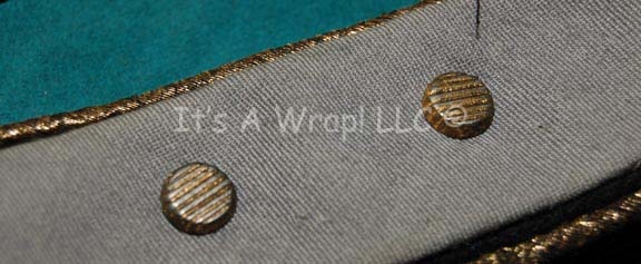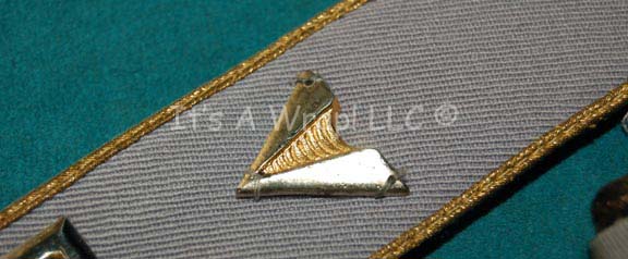 Description: A lot of two items like those featured in various Star Trek feature films. This lot consists of a over the shoulder, Special Services Blue division strip featuring a silver-colored ‘security disk’, metal rank pin denoting ‘Ensign’, gold trim, and a silver-colored metal reinforcement on the end to secure against the uniform. Included is a matching, cuff division strip itself featuring the same colors and trim in addition to two resin-cast, Starfleet commendations badges pinned upon it. Both items appear in good condition with a very limited amount of fraying.