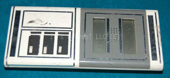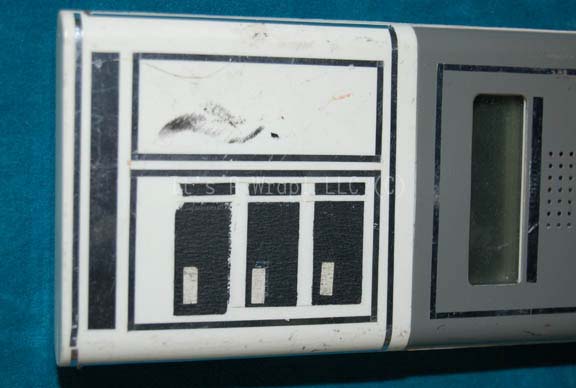 Description: A prop scanner believed to have appeared in episodes of Star Trek: The Next Generation. The item is made from molded plastic with two readouts. It features multiple lines of metallic silver adhesive detail and three black faux buttons made in the Starfleet style. The readouts activate when powered internally by two AA sized 1.5volt batteries. The item measures approx. 7 X 3 X 0.75 inches and is in actuality a temperature gage.