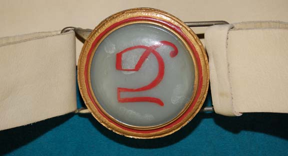 Description: A wardrobe accessory featured in Star Trek IV: The Voyage Home during the scenes involving the repair of the captured Klingon Bird-of-Prey. The item is a tan leather belt with snap ends and wrap around features for the metal belt buckle. The buckle is a molded metal Starfleet emblem turned sideways with a resin Vulcan badge adhered to the face with painted Vulcan iconography. The belt measures approx. 33.5 inches with some of the length kept for wrapping around the buckle ends.